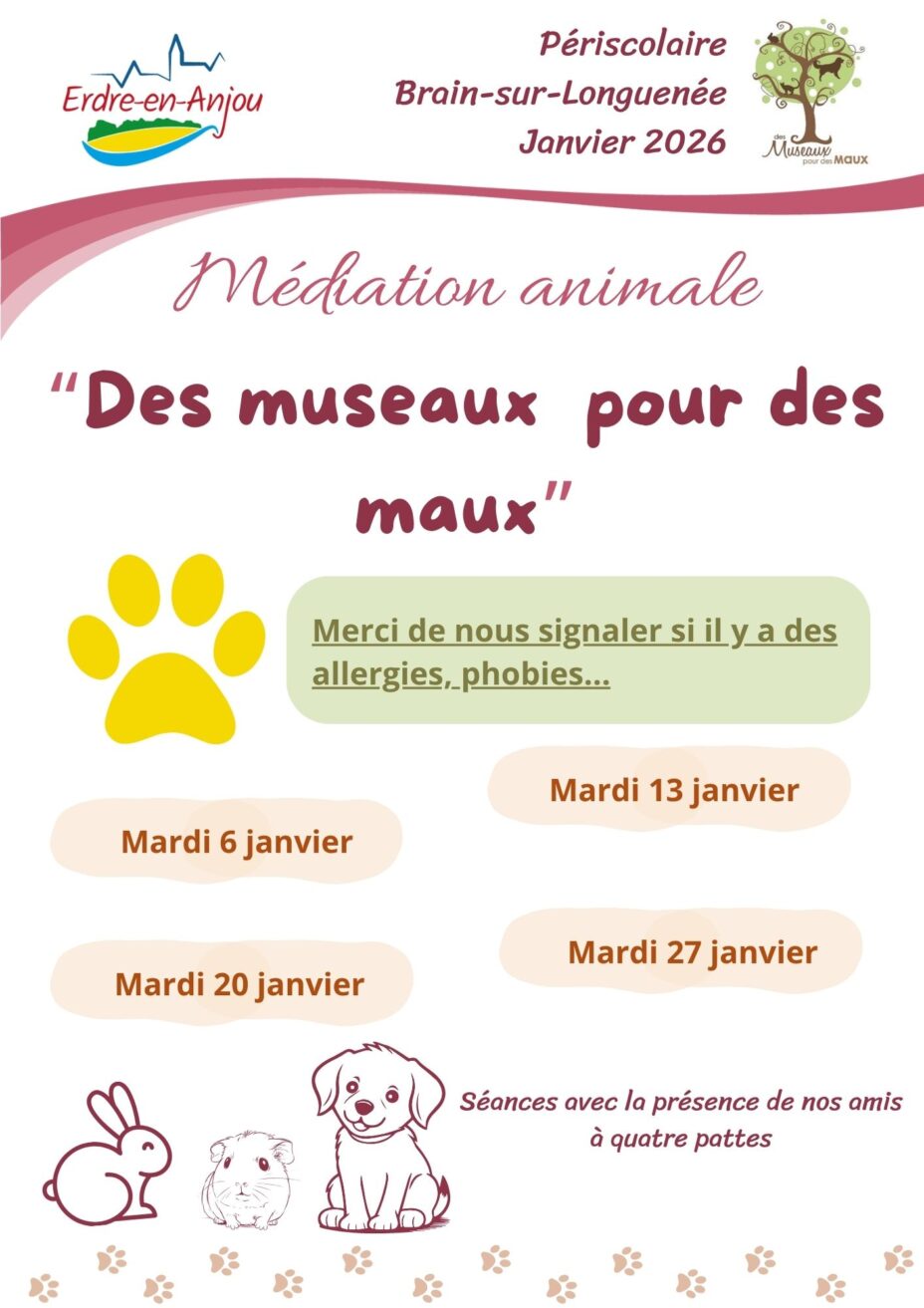 • à Brain-sur-Longuenée les mardis 6, 13, 20 et 27 janvier 2026