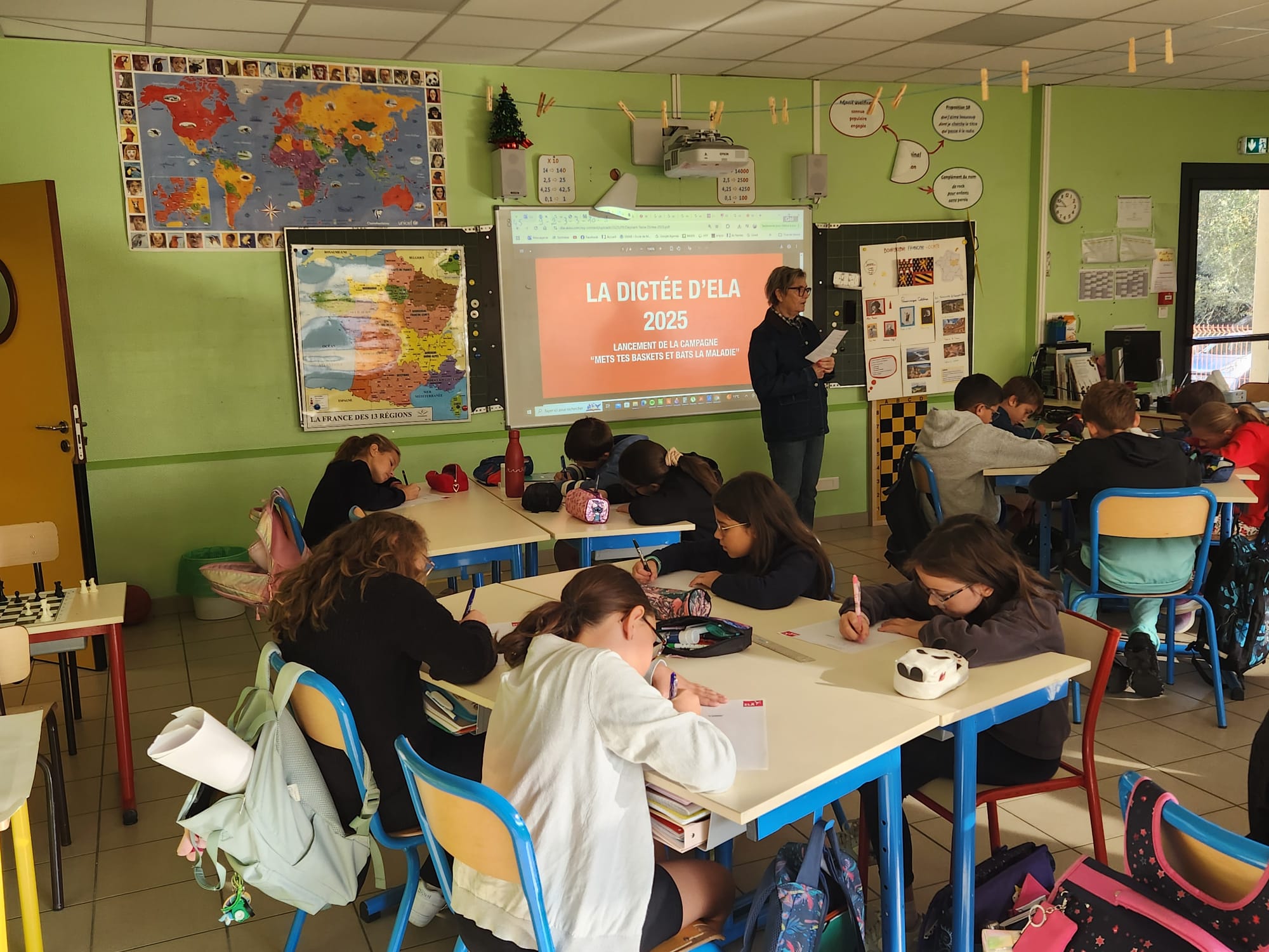 Ce lundi 13 octobre, les élèves de l’école Hervé Bazin ont participé à la Dictée d’ELA, un moment fort de sensibilisation au handicap et à la solidarité, en soutien à l’Association Européenne contre les Leucodystrophies (ELA).