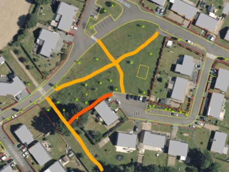 Légende du plan : Orange : cheminements refaits Rouge : cheminements créés