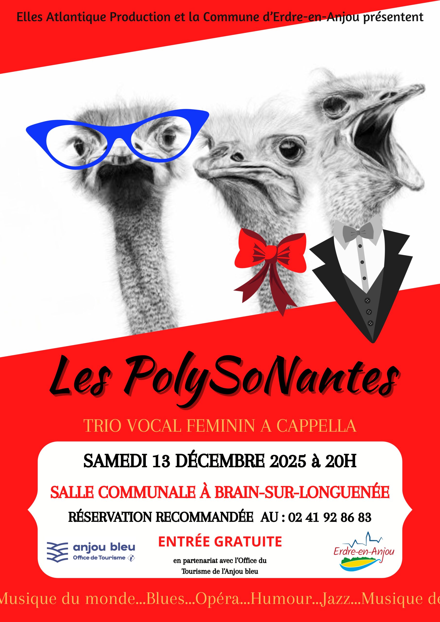 Le trio vocal féminin a cappella Les PolySoNantes vous entraînera dans un voyage musical plein de charme, entre musique du monde, blues, opéra, jazz et humour.