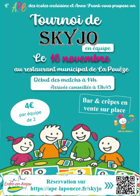 L’APE des écoles publiques de La Pouëze organise un tournoi de Skyjo en équipe le 16 novembre au restaurant municipal à La Pouëze.