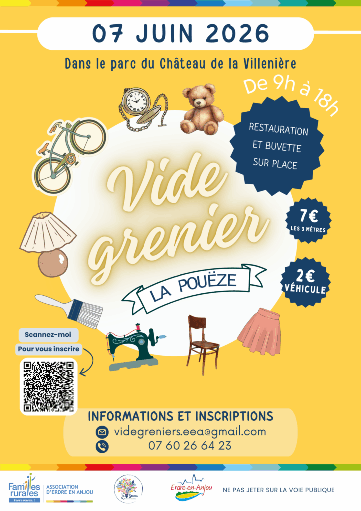 L’Association Familles Rurales de La Pouëze organise son traditionnel vide-grenier.